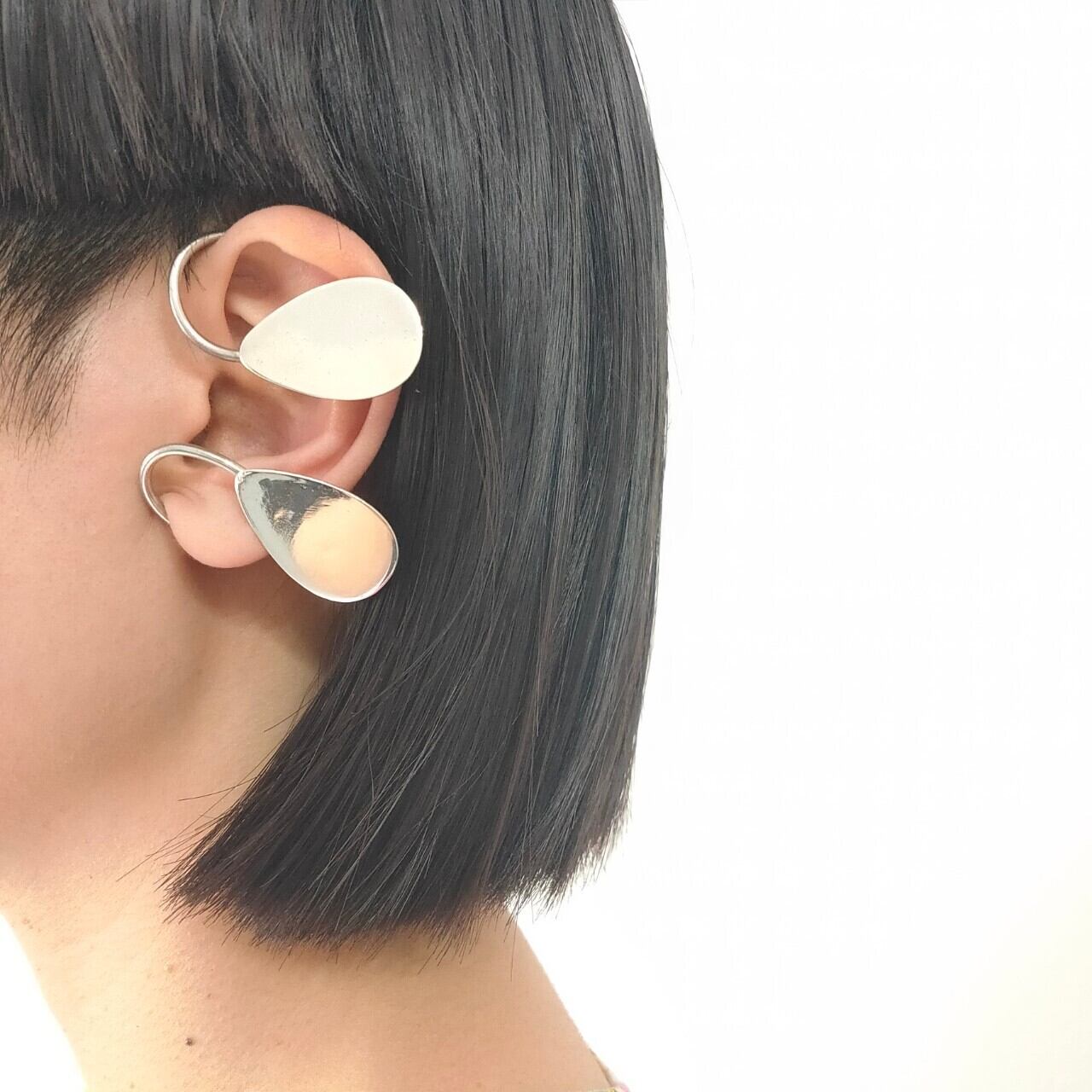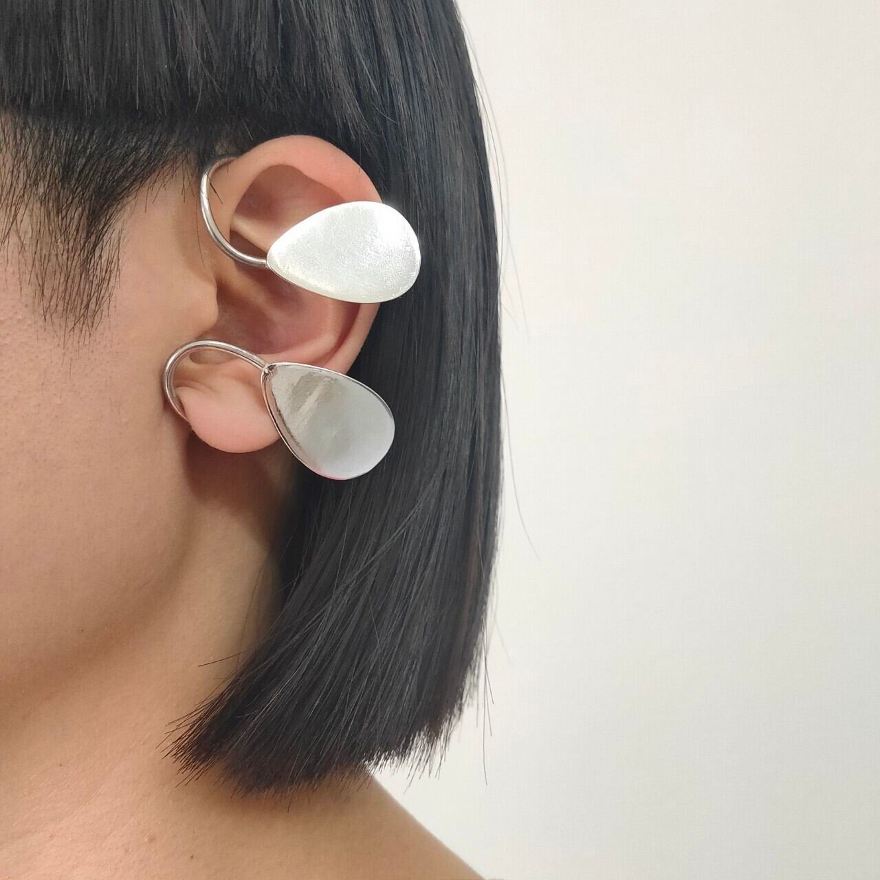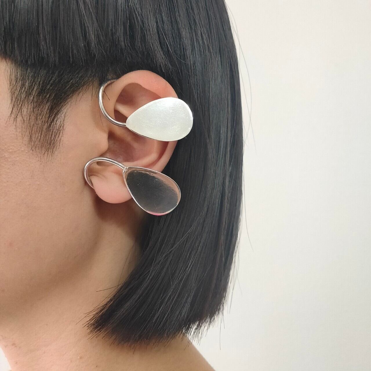 イヤーカフを優しく押し広げたり、押し縮める事でご自身の耳の形に合わせる事が出来ます。