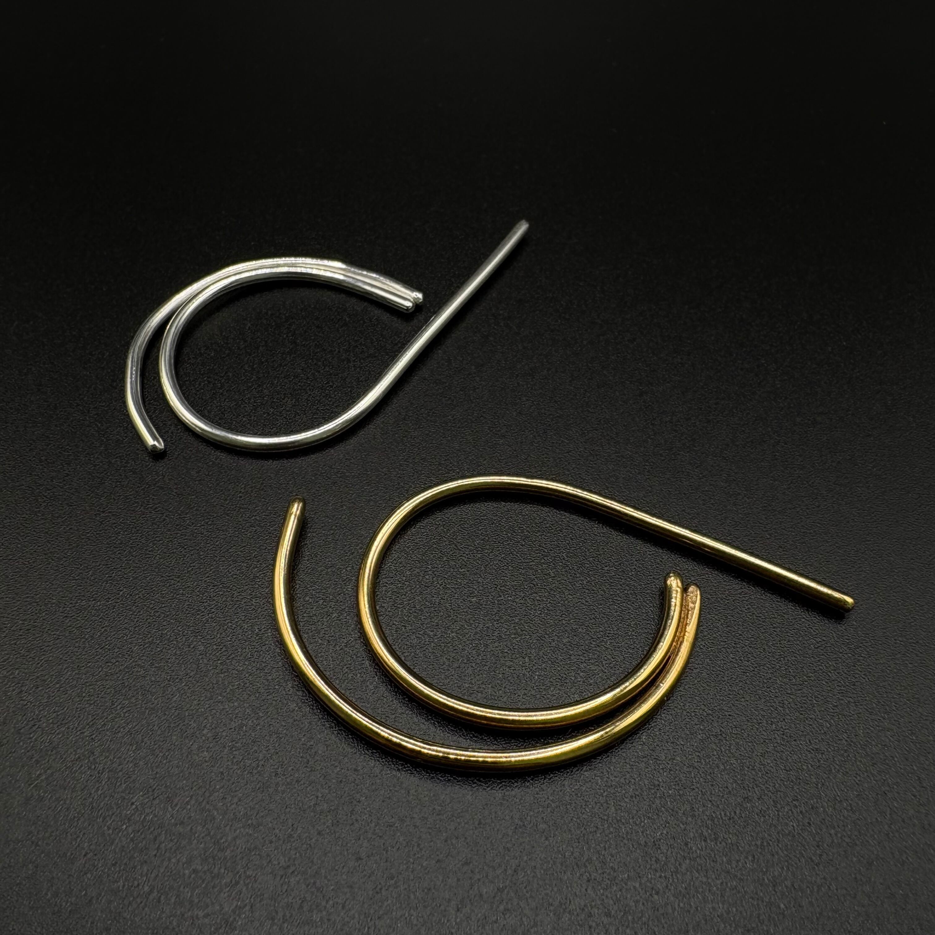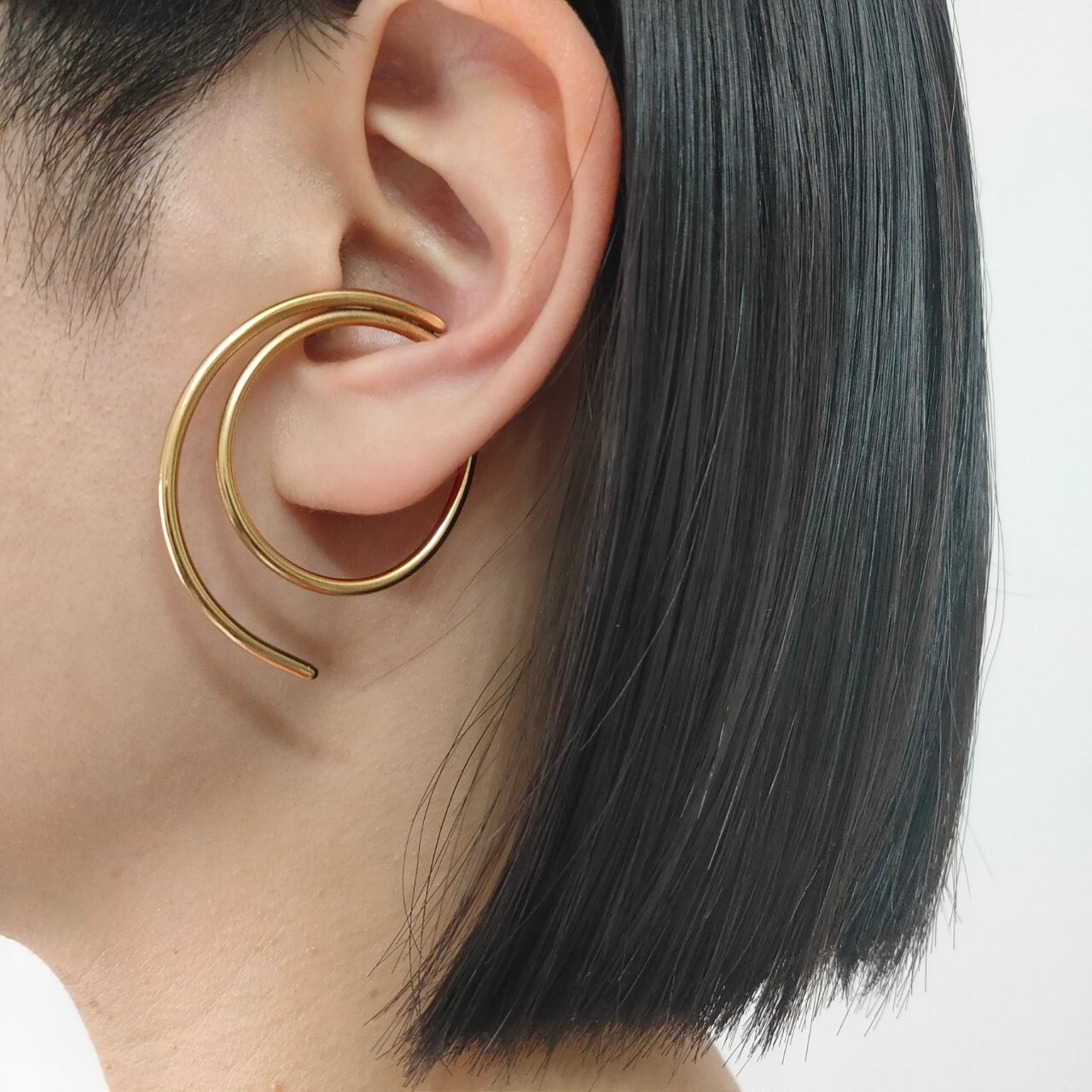 イヤーカフを優しく押し広げたり、押し縮める事でご自身の耳の形に合わせる事が出来ます。